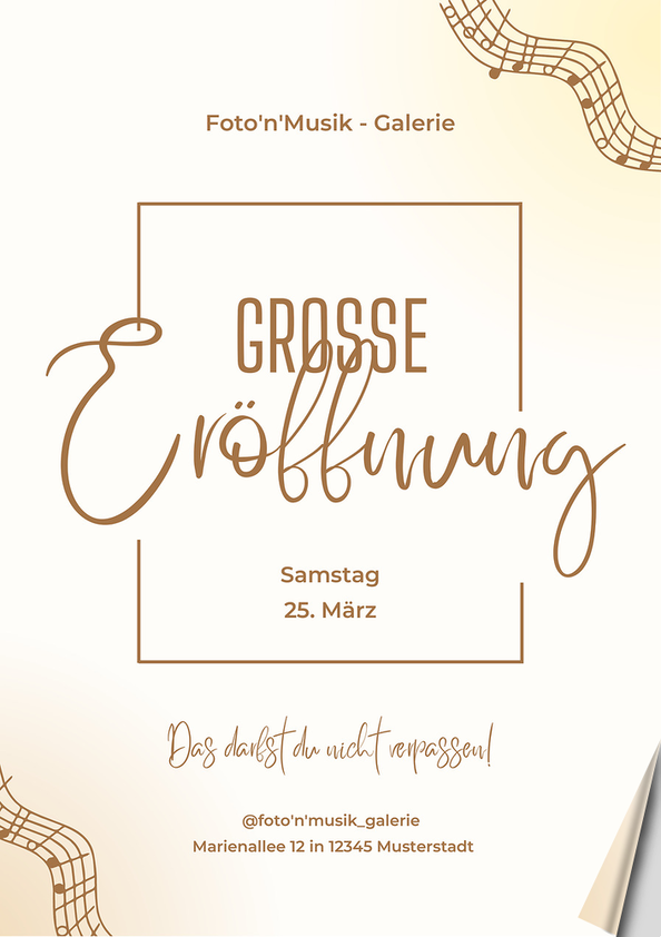 Foto'n'Musik - GalerieGROSSEEröffnungSamstag25. MärzDas darfst du nicht verpassen!@foto'n'musik_galerieMarienallee 12 in 12345 Musterstadt